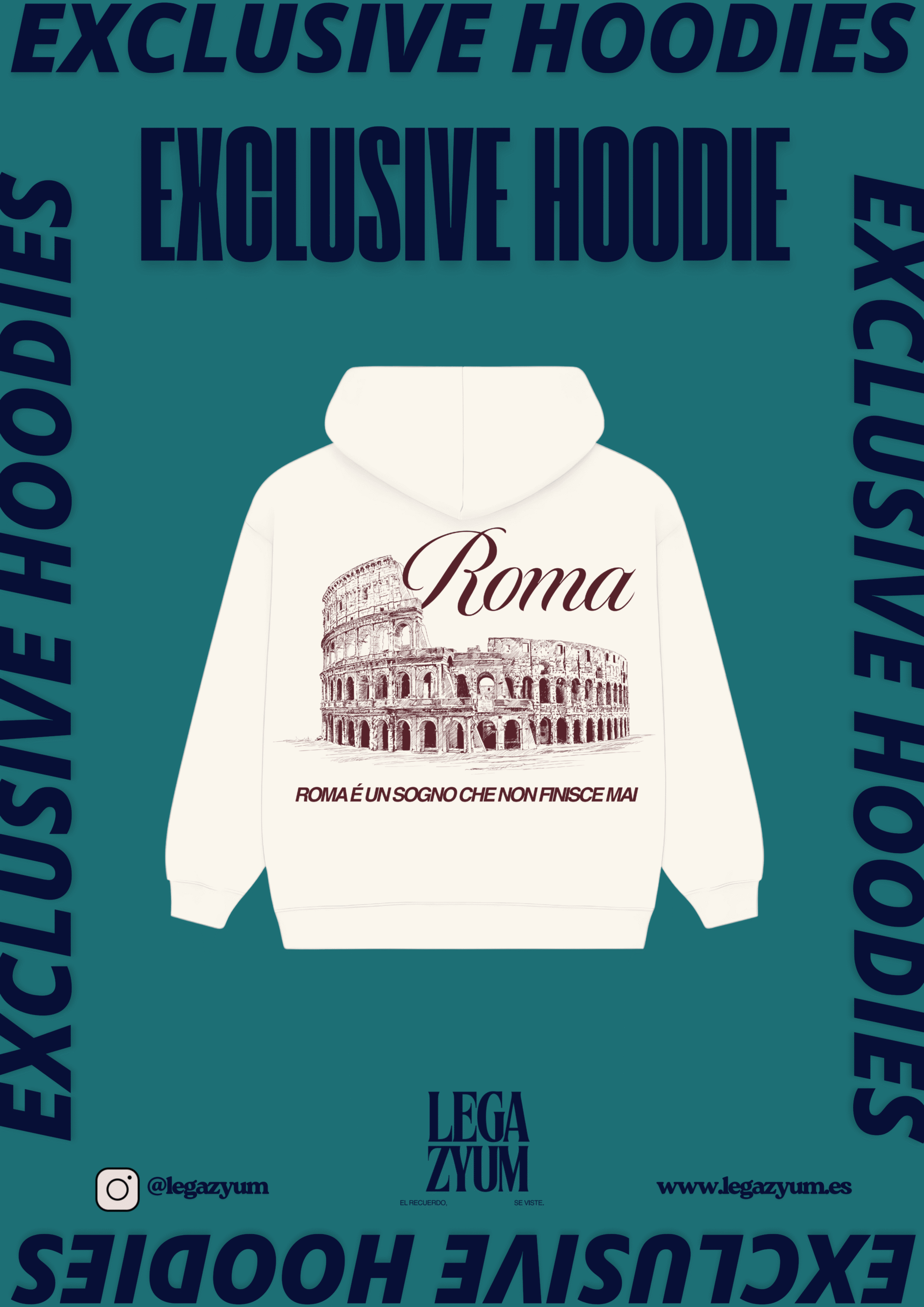 La sudadera de Italia x Legazyum se ha creado con el objetivo de que todos los que vayáis al viaje la llevéis puesta en el aeropuerto, durante las visitas y a lo largo del viaje.